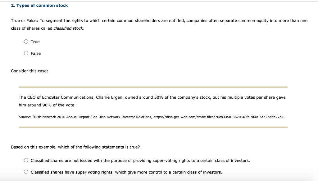Solved 2 Types Of Common Stock Aa Aa E True Or False In Chegg Com